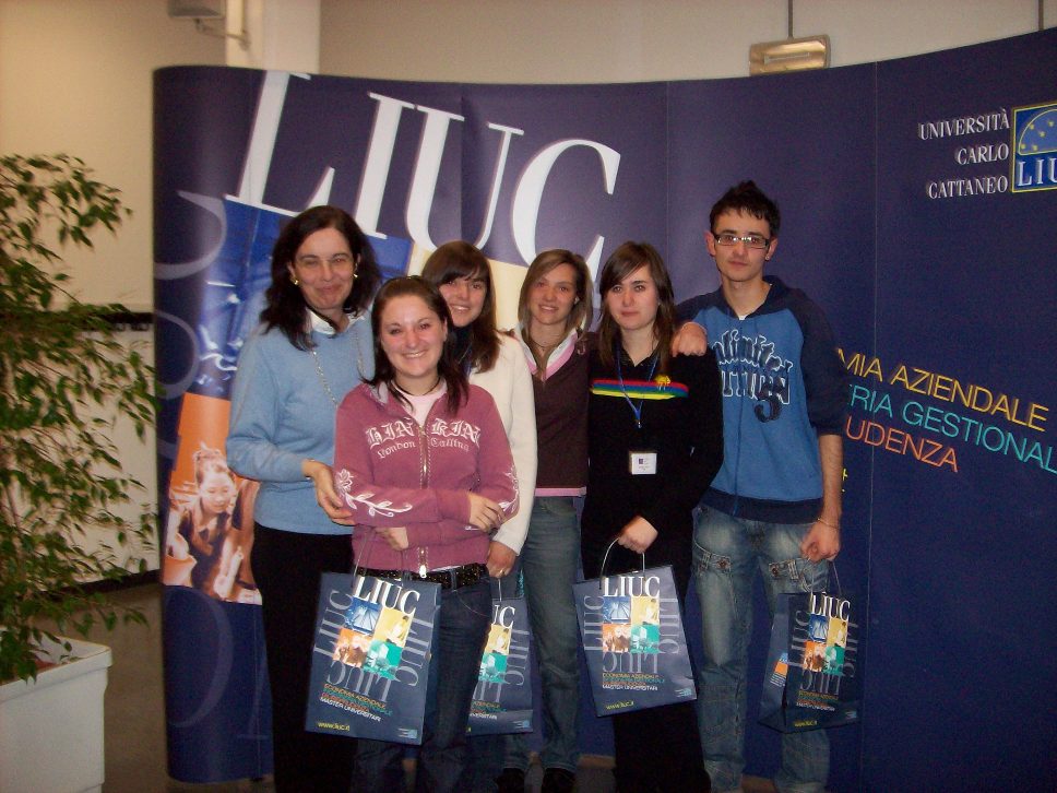 Squadra quattordicesima classificata:Debora Monti, Chiara Cova, Annalisa Rinaldi, Chiara Marcolfo, Brian Scarpolini con la docente di economia aziendale, prof.ssa Maria Corinna Binda